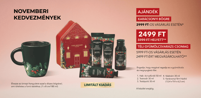 A ajánlatok 2025. november 2. és november 30. között érvényesek és kizárólag törzsvásárlók számára érhetők el, utólag nem érvényesíthetőek.