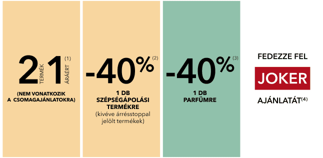 (4) A Joker ajánlatról és annak részleteiről érdeklődjön márkaboltjainkban Szépségtanácsadóinknál.