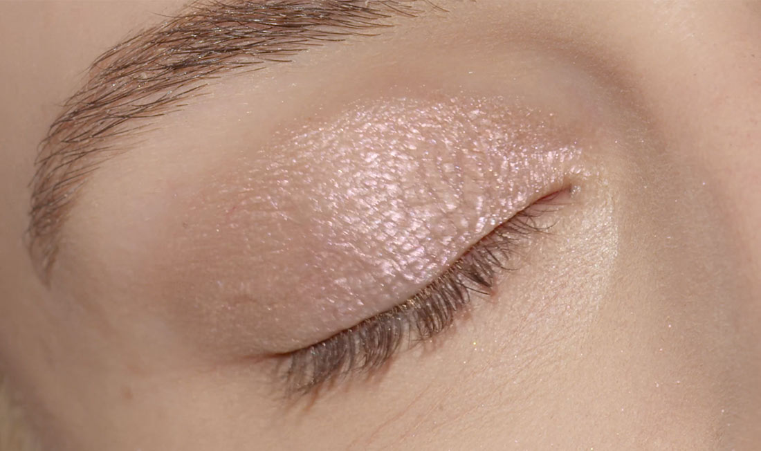 Hozzon létre egy rózsaszín alapot a szemen! Ehhez használja a lapos Yves Rocher szemhéjecsetet, és építse a Celesé árnyalatot az egész mozgó szemhéjra!