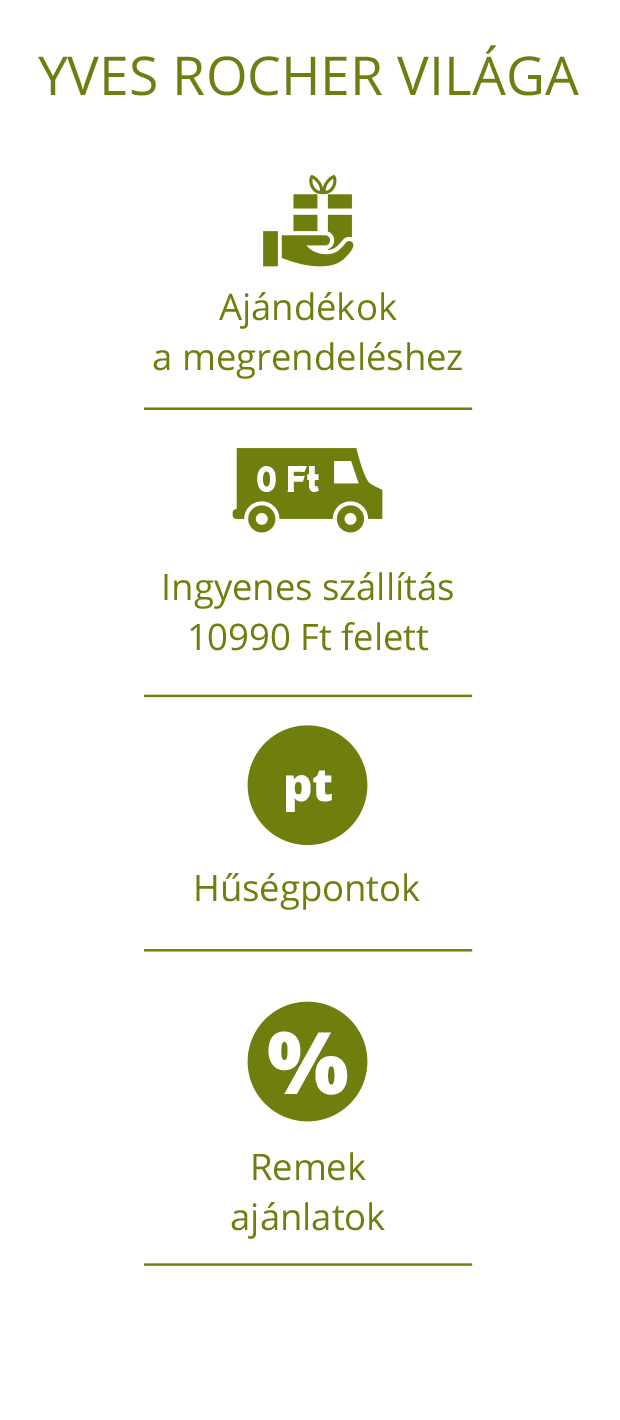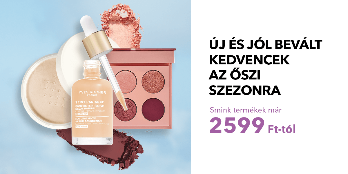 Főoldal A hónap ajánlatai 23.10 PRÓBÁLJA KI ÚJDONSÁGAINKAT! Glow Energie - Ragyogást adó bőrsimító szérum 30 ml (0) 13999 Ft 1000ml: 466633 Ft Kosárba Pure Algue - Sminkeltávolító tej 200 ml (0) 4999 Ft 1000ml: 24995 Ft Kosárba Szemhéjpúder paletták - Nuances de Roses 5,9 g (0) 6499 Ft 1000ml: 1101525 Ft Válasszon színt (4) ÚJ GLOW ENERGIE TERMÉKCSALÁD: akár 30% kedvezménnyel FEDEZZE FEL ÚJ ARCTISZTÍTÓ TERMÉKEINKET KEDVEZMÉNYES ÁRON! ÚJ BAIN DE NATURE ILLAT: CITROMVERBÉNA & KAMILLA: már 1999 Ft-tól ÚJ GLOW ENERGIE ARCÁPOLÓ CSOMAG: Törzsvásárlók számára kedvezményesen ÚJ ÉS JÓL BEVÁLT SMINK TERMÉKEK AZ ŐSZI SZEZONRA AJÁNDÉK SZEMKÖRNYÉKÁPOLÓ 1 Ft-ért Regeneráló szérum külső káros hatások ellen 50 ml (22) 14999 Ft 1000ml: 299980 Ft Nem elérhető Ragyogást és megújulást elősegítő ápoló 122 ml (5) 11999 Ft 1000ml: 98352 Ft Kosárba