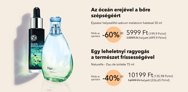 (2) 40% kedvezmény egy db Ön által választott szépségápolási termékre. Az ajánlat más kedvezményekkel nem összevonható, nem vonatkozik csomagokra, csomagolóanyagokra, adventi kalendáriumra és ajándékutalványra és árrés stopos termékre.